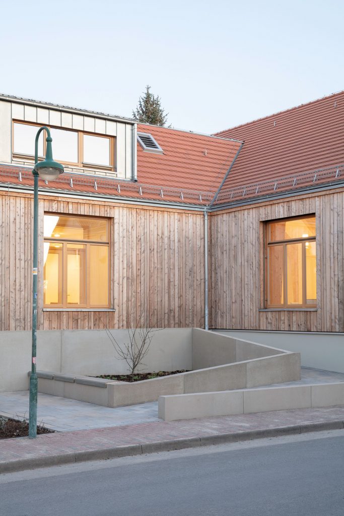 Zu Beginn des auf einen Wettbewerbsgewinn zurückgehenden Projekts stand die bewusste Entscheidung, ein ortsbildprägendes Gemeindehaus durch Sanierung zu bewahren und mit einem Neubau in Holzrahmenbauweise nachhaltig zu stärken.